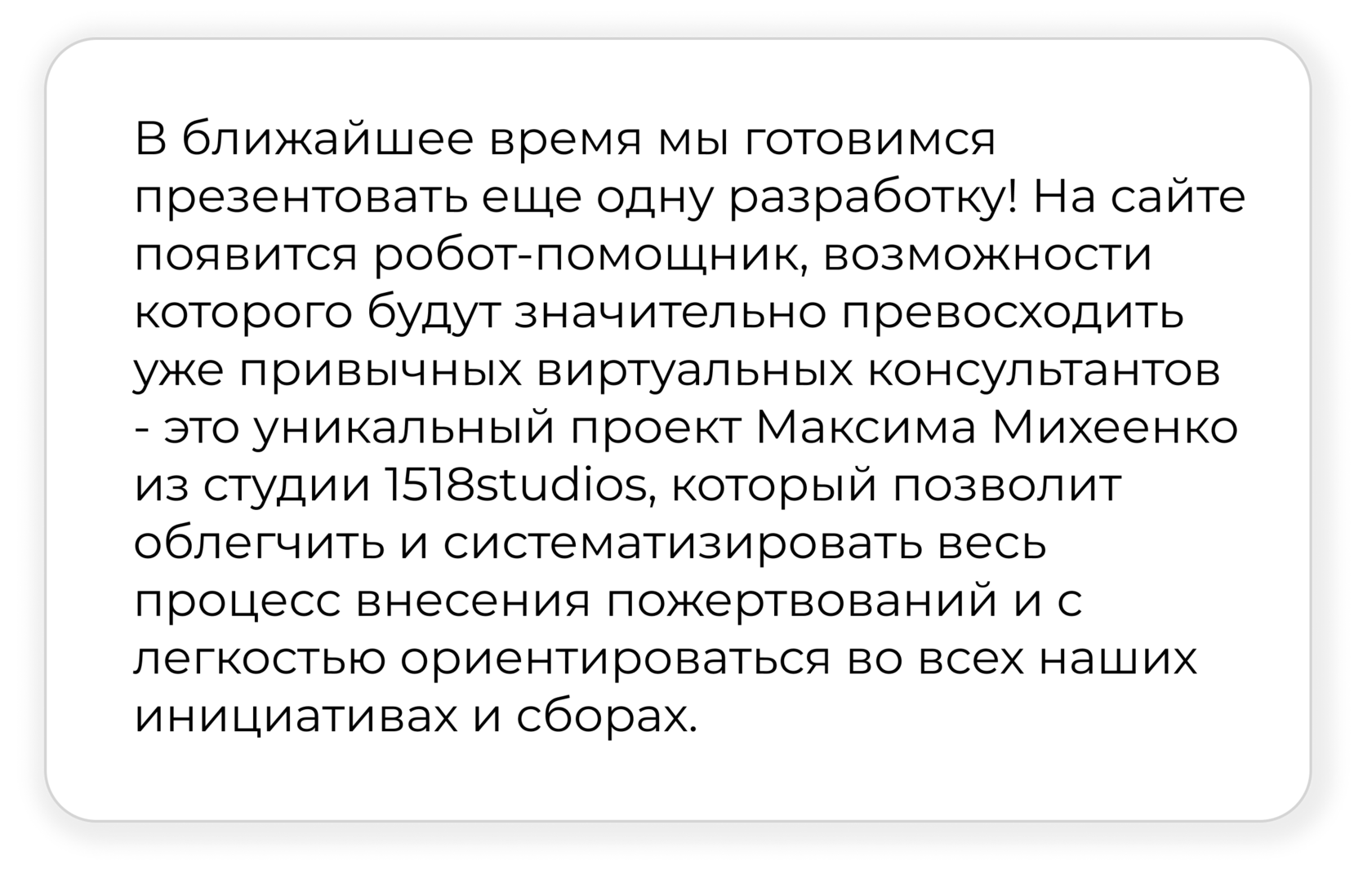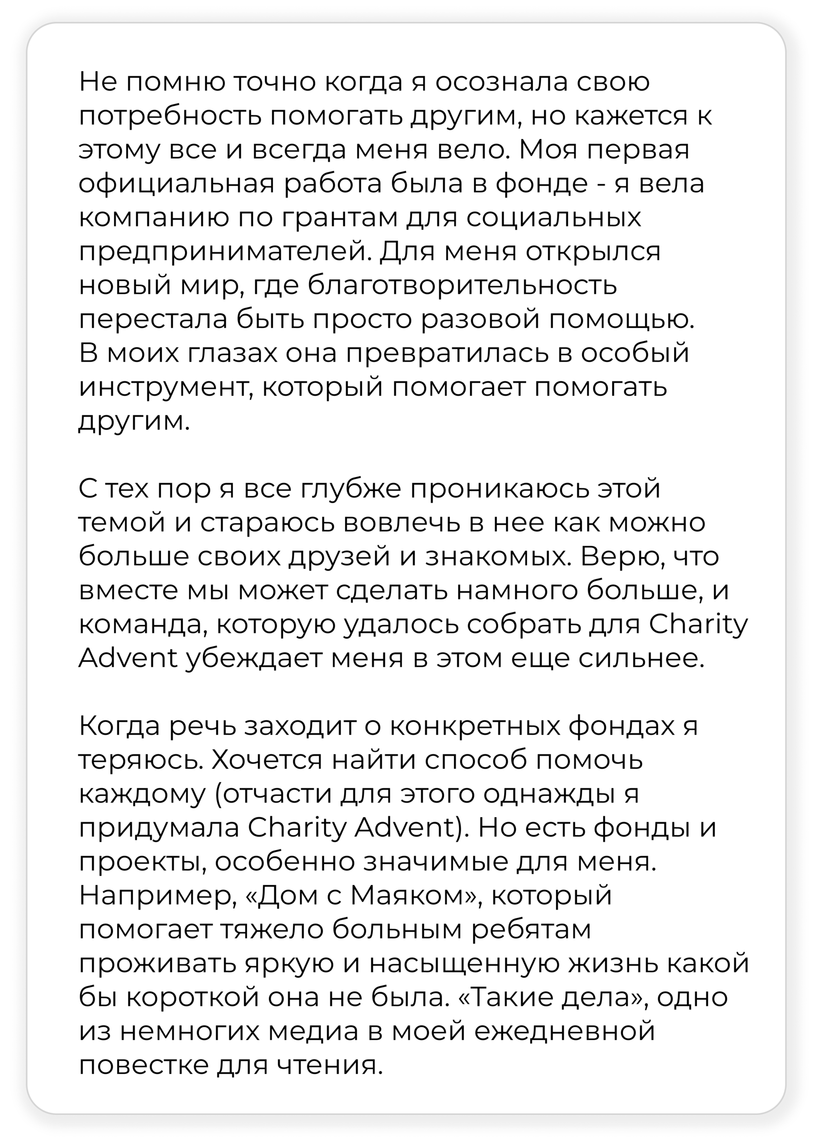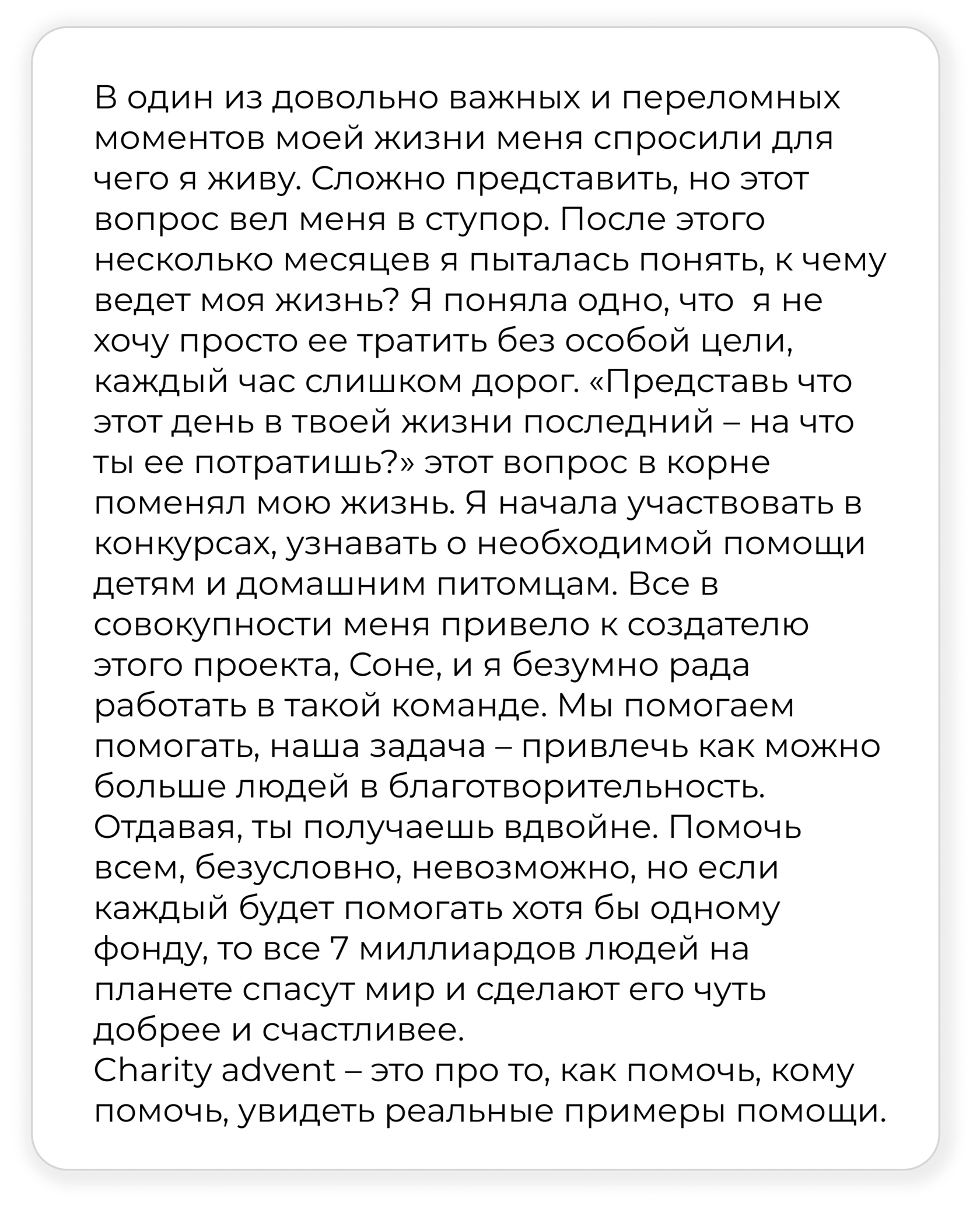 Я верю, что когда-нибудь в нашем государстве система детских домов поменяет форму и будет трансформирована в учреждения системной помощи матери и ребенку. Такая трансформация обязательно приведет к тому, что в нашем мире станет меньше сирот и больше счастливых детей. И помощь такому кризисному центру – это маленький шаг на пути к этой мечте!