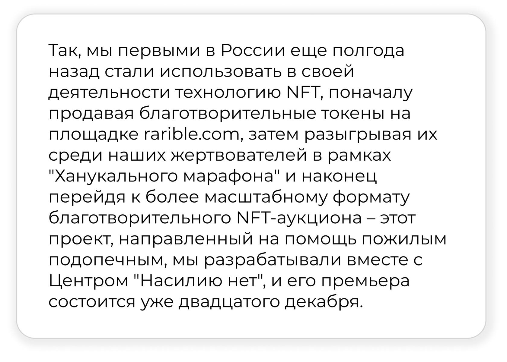 Я стала ездить туда, писать посты в интернете и просить о помощи. Был сделан сайт кризисного центра. Сейчас мы очень нуждаемся в том, чтобы найти жертвователей, которые подпишутся на рекуррентные (ежемесячные платежи), и центр будет получать стабильную помощь для оплаты всего самого необходимого: еды, коммунальных платежей, памперсов и лекарств. Подписаться можно по ссылке: